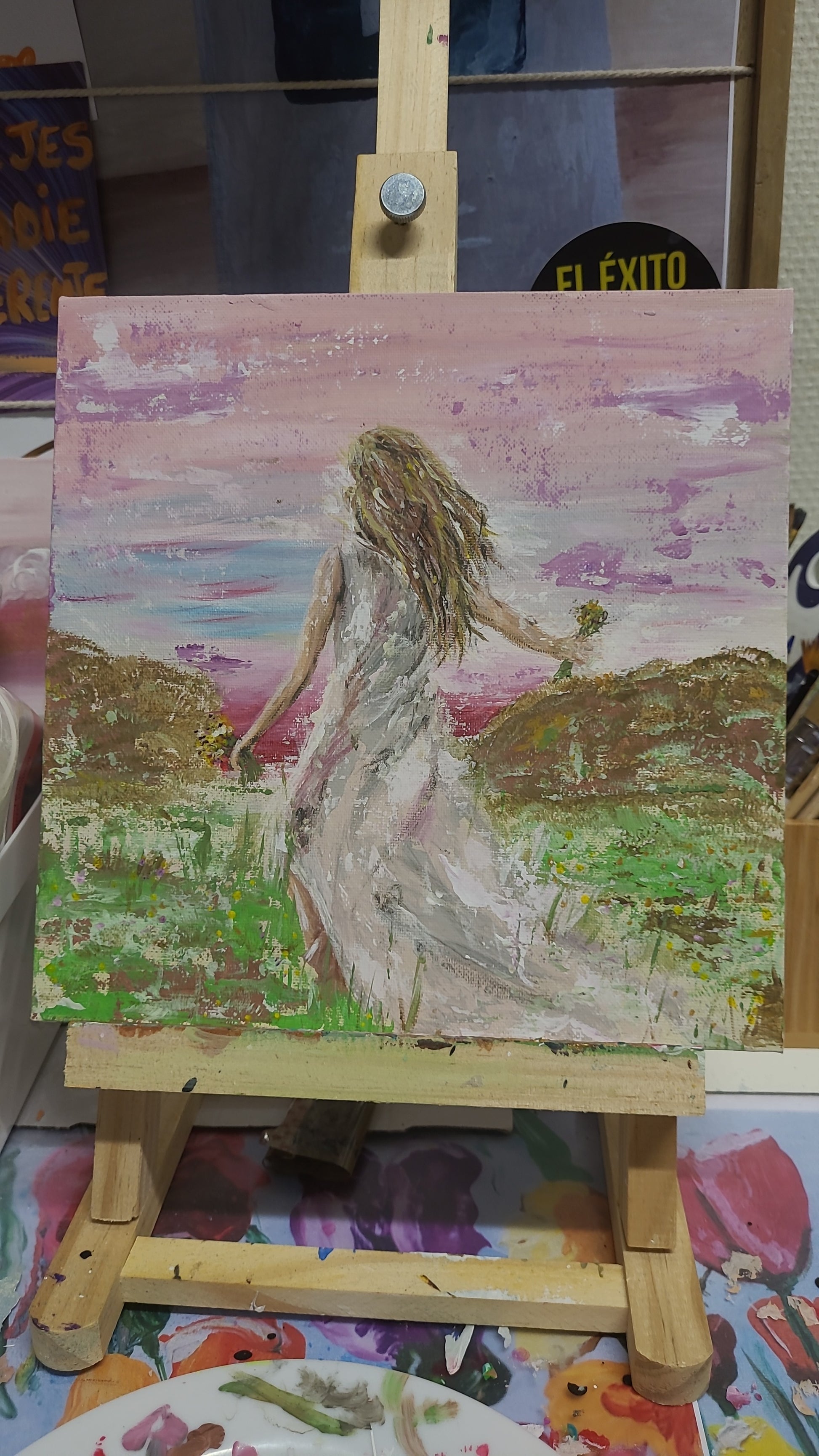 Lienzo pegado en madera de 25x25cm pintado a mano con acrílicos en Zeebrugge (Bélgica) 2022.