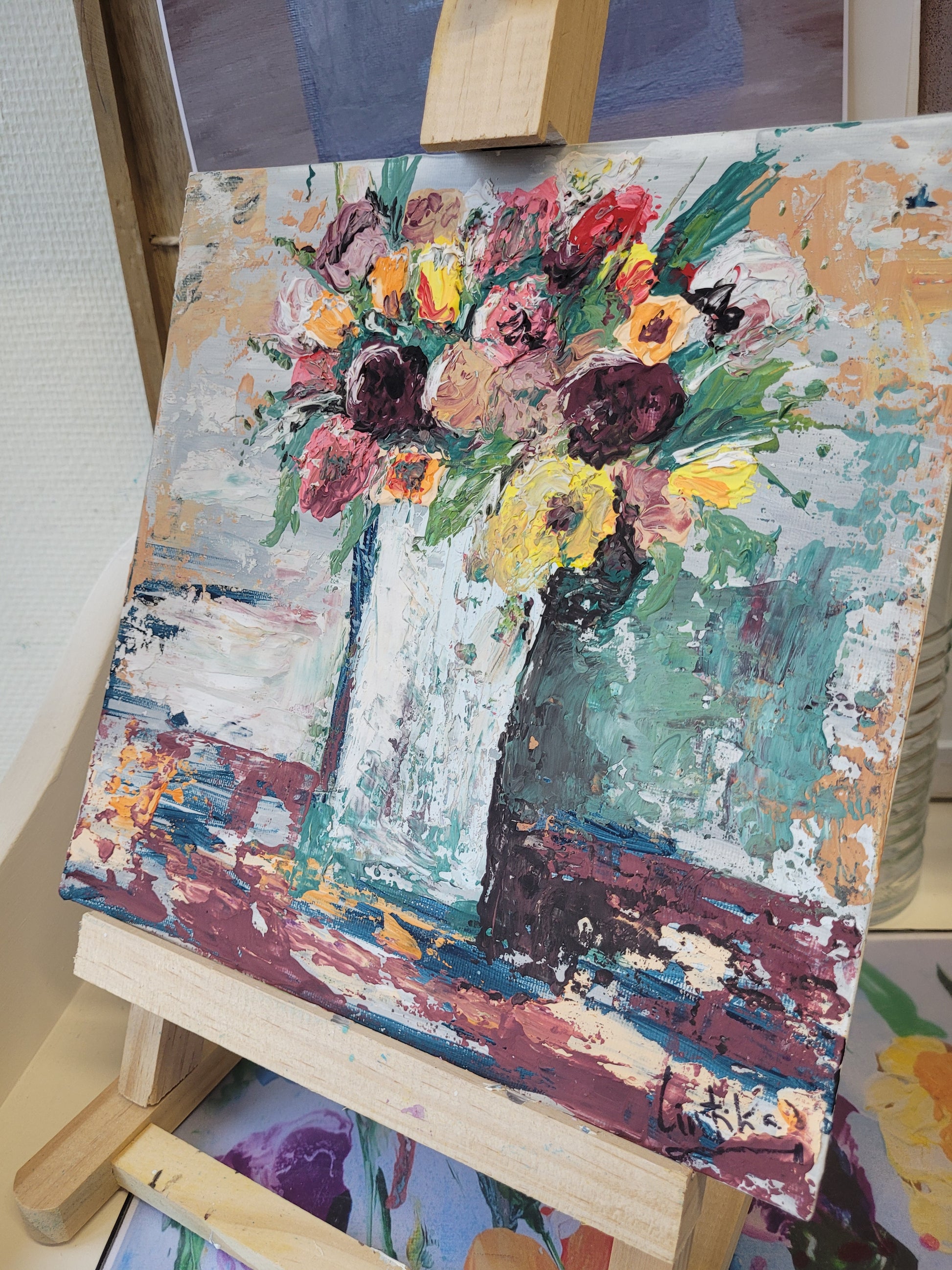 Lienzo de 25x25cm pegado a una madera (ver fotos) original, pintado a mano con espátula y pinturas acrílicas. Cintika 2022.