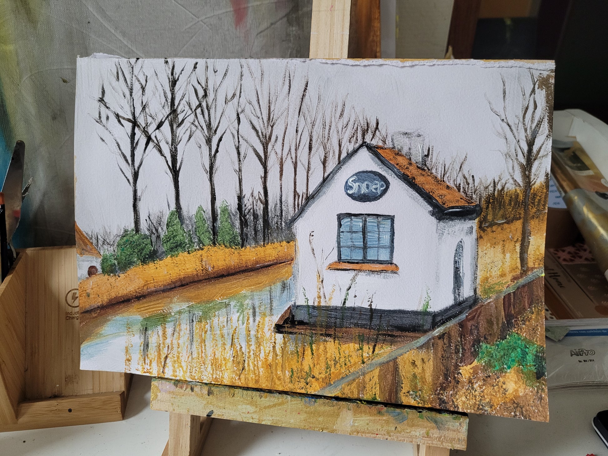 Lámina de papel A4 de 300gr pintada a mano con acrílicos.