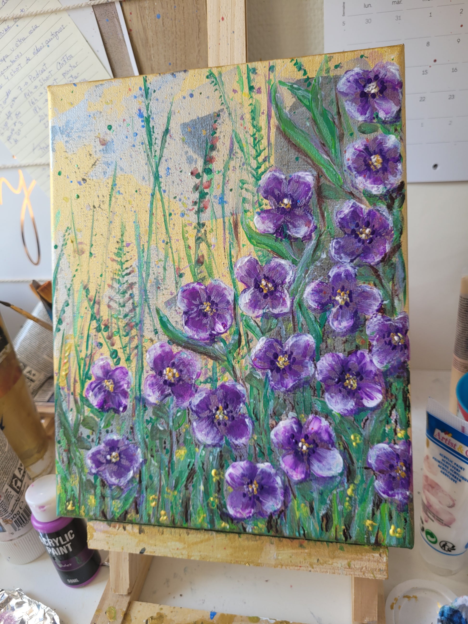 Lienzo de 24x30cm pintado a mano con acrílicos y acrílicos de brillo. 2023 por Cintia RF