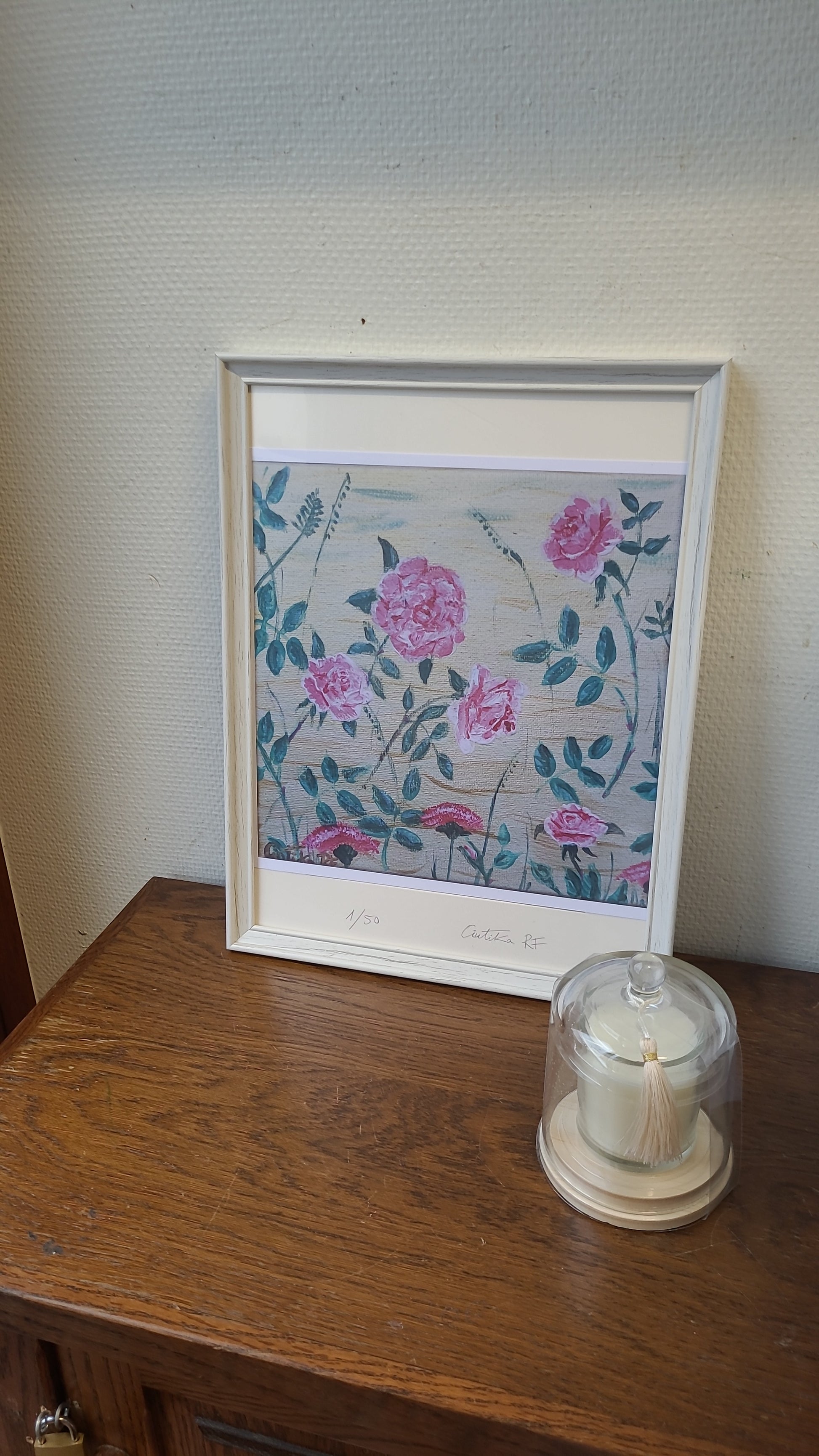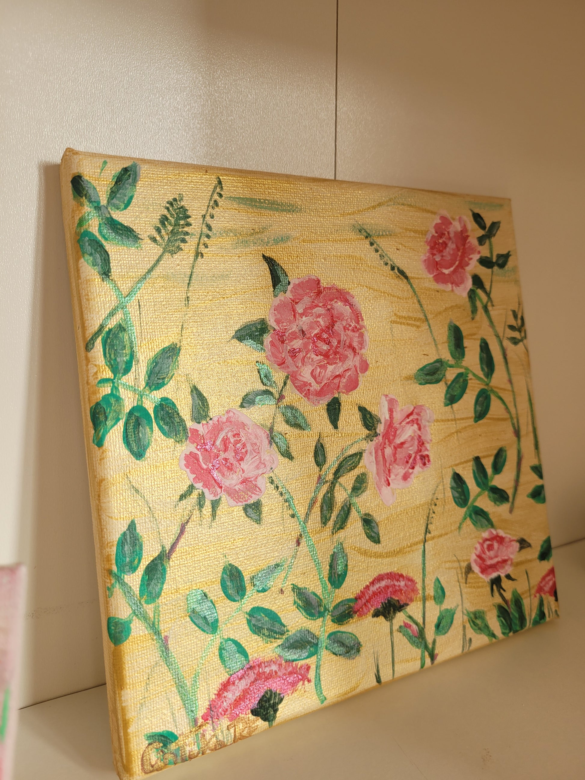 El fondo de las flores está pintado con pintura dorada que brilla dependiendo de la luz.
