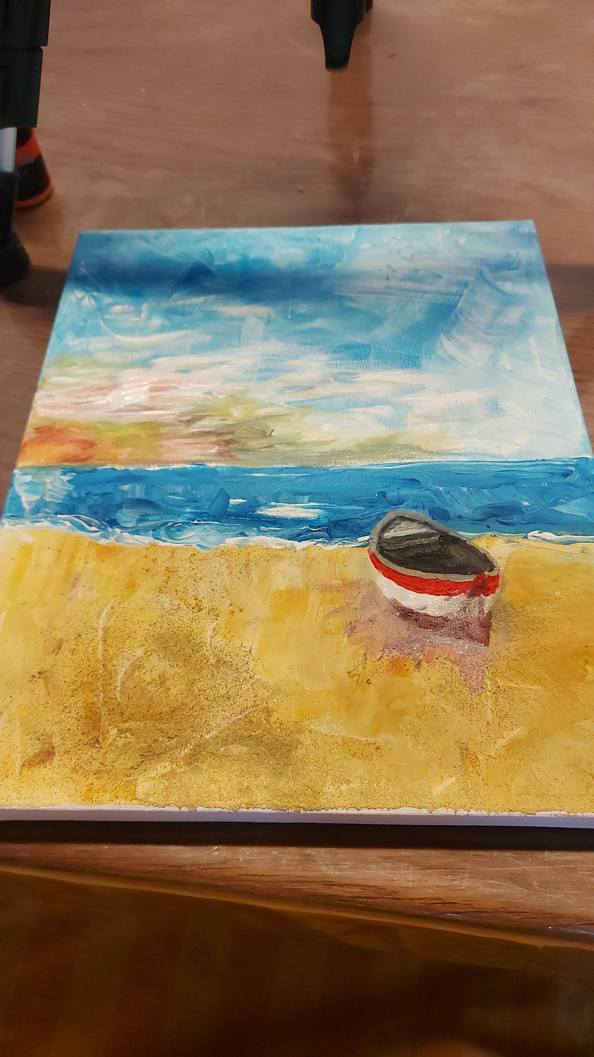Peinture 24x30cm, au couteau et pinceau, peinture acrylique, sable de plage. octobre 2022 à Blankenberge (Belgique).